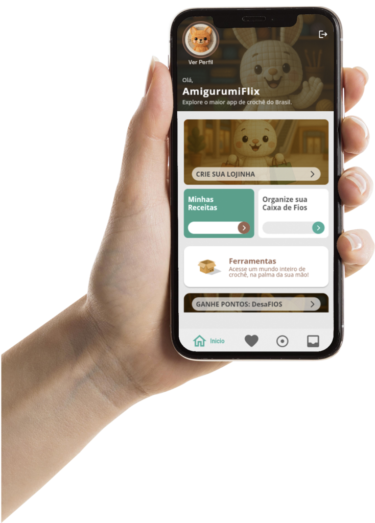 O AmigurumiFlix é um aplicativo feito para facilitar a vida das crocheteiras e garantir que a experiência seja sempre prazerosa.